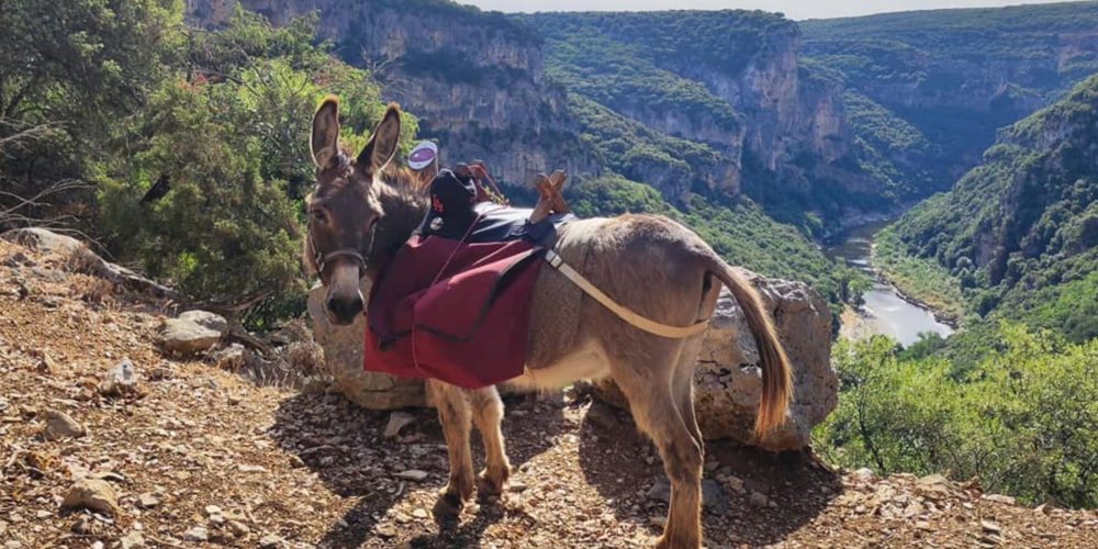 L’Ardèche avec un âne, entre gorges spectaculaires, plateaux volcaniques et nature préservée.