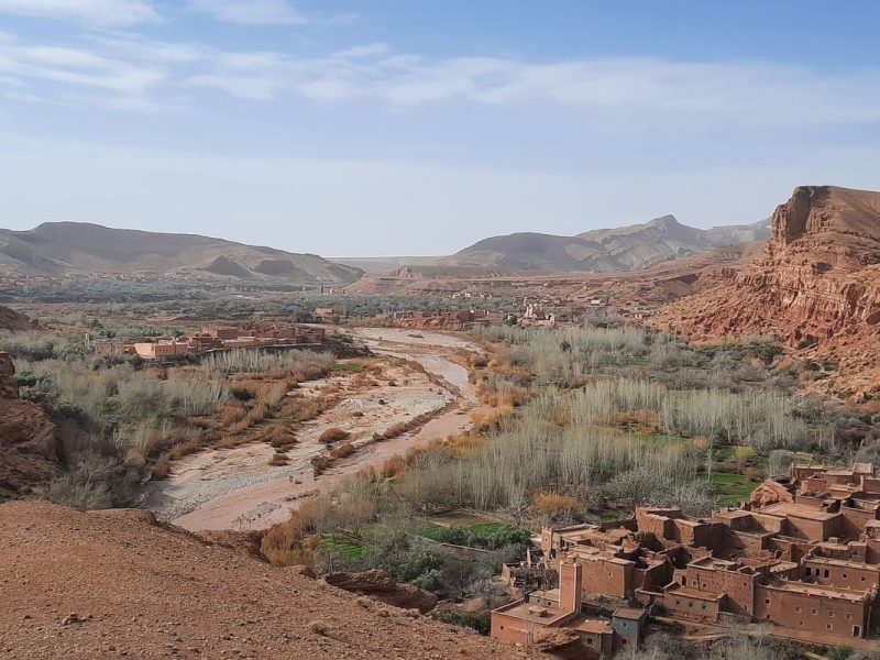 Vous descendez tranquillement une vallée de lauriers roses (prévoir de traverser les gorges avec des sandales), puis vous marchez dans de splendides petites gorges parsemées de leurs lauriers roses. Puis vous arrivez dans la vallée d’Elhout et ses sublimes casbahs, un des grand village de la région.