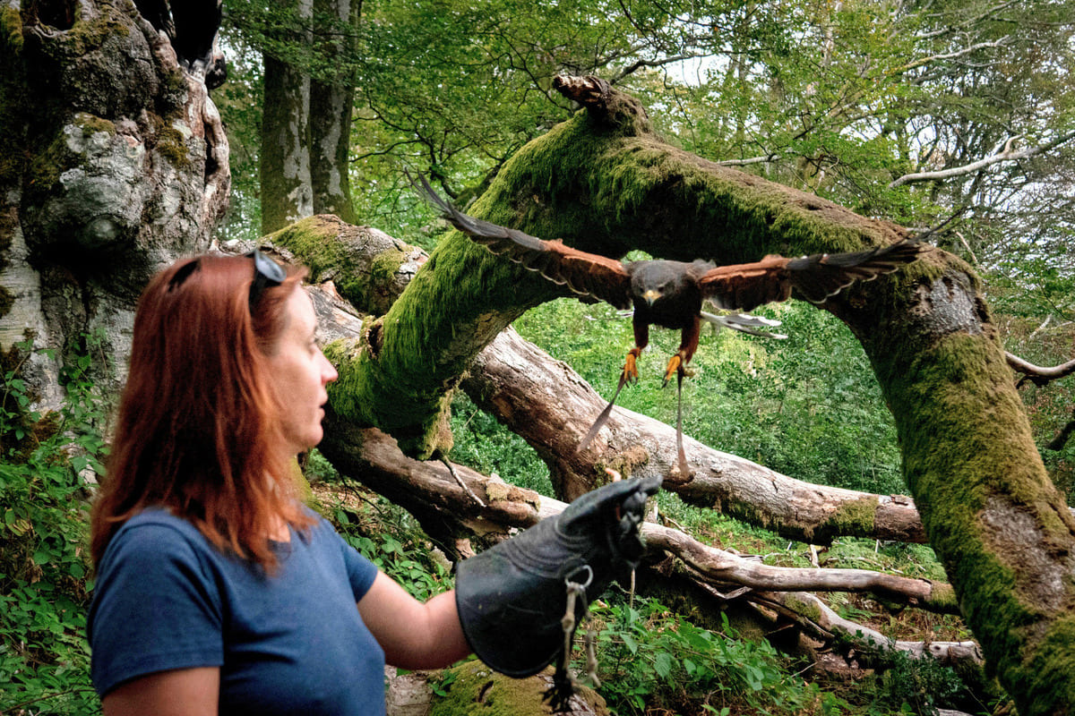 - Une randonnée de 2 heures avec les rapaces accompagnés de leur fauconnier