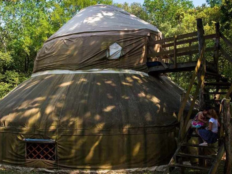 Vous finirez votre randonnée dans un magnifique camping de yourtes, niché sous les chênes verts : un endroit parfait pour une immersion nature. À deux pas, laissez-vous tenter par une fin d'après-midi de détente au bord de la rivière, au fond des gorges de l'Ardèche, dans un cadre tout simplement sublime.