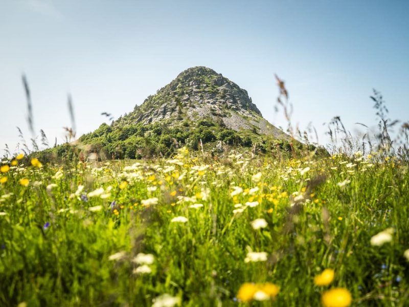 Au sommet, vous découvrez la phonolite, une roche volcanique étonnante qui produit un son clair lorsqu’on la frappe. L’occasion de tester un amusant « lauziophone », un instrument improvisé avec les pierres du volcan.